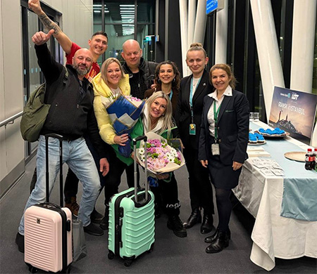 Ardından yolcular ve uçuş ekibi, C2 kapısında İGA ve yer hizmetleri tarafından çiçeklerle karşılandı.