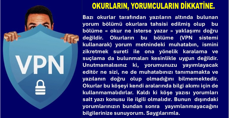 Evet, VPN arkasına sığınarak işyeri ve yöneticilerine karşı yapılan sert eleştirilerin temelinde çoğu zaman KORKU vardır. Şayet tenkitler hakarete ve kötü sözlere ulaşıyorsa ve yalan ve yanlışla bezeniyorsa yorumcunun ahlaki yapısı da kendiliğinden