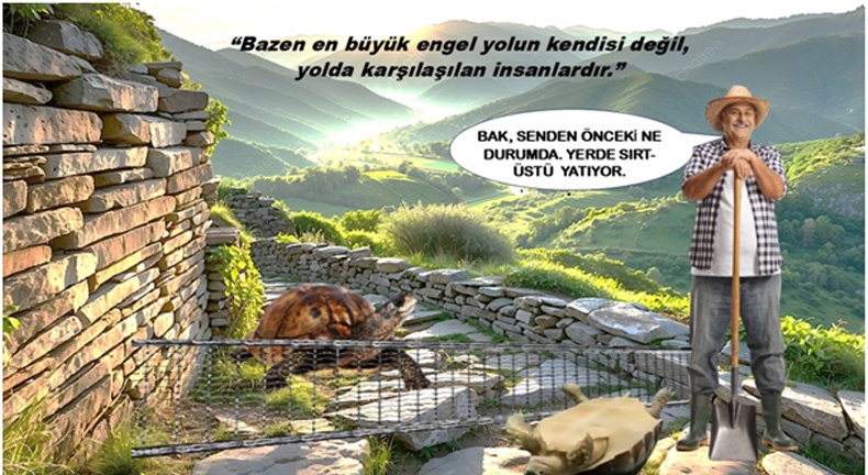 Hiç kimse açıkça “yavaşla” demez.Ama kaplumbağa her hızlandığında, görünmez bir el onu sırtüstü bırakır.