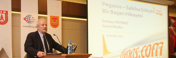 Pegasus Havayolları Genel Müdürü Sertaç Haybat, “İstanbul ve Bölgenin Hızla Artan Hava Ulaşım Talebi ve Sabiha Gökçen Havalimanı’nın Rolü” konulu konferansta Sabiha Gökçen’de yaşadıkları zorluklardan bahsetti.
