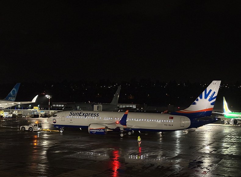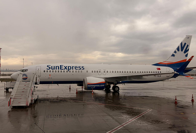 Türk Hava Yolları ve Lufthansa’nın ortak kuruluşu SunExpress, 19 Aralık tarihinde iki adet yeni Boeing 737-8 uçağını teslim aldı. Boeing’in Seattle’daki tesisinden yola çıkan TC-SLA ve TC-SLB tescilli uçaklar, Keflavik’te yapılan yakıt ikmalinin ardından 21 Aralık tarihinde Antalya Havalimanı’na iniş yaptı. Uçakların 26 Aralık ve 2 Ocak tarihleri itibarıyla operasyona başlaması planlanıyor.