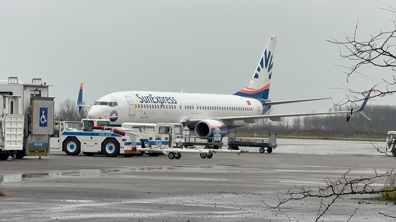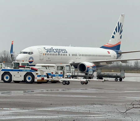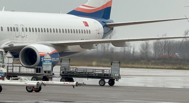 Samsun'dan İzmir'e gitmek üzere kalkışa hazırlanan SunExpress'e ait yolcu uçağı, kalkış sırasında sürüsüne çarpınca sefer iptal edildi, uçak aprona geri döndü.