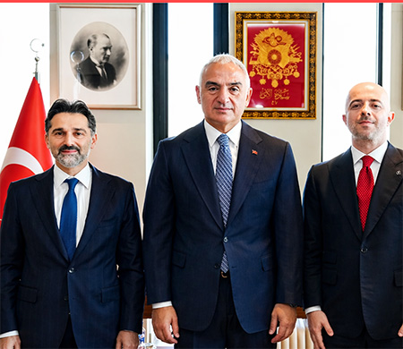 Kültür ve Turizm Bakanı Mehmet Nuri Ersoy, Türk Hava Yolları’nın yeni Yönetim Kurulu Başkanı Murat Şeker ve Genel Müdürü Ahmet Olmuştur ile Atatürk Kültür Merkezi’nde bir araya geldi.