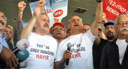 Dün TBMM "Türk Hava Yolları'nda Grev Yasağına Hayır" yazılı tişörtlerle katılan CHP İstanbul Milletvekili Süleyman Çelebi ve İzmir Milletvekili Musa Çam, bugün de Atatürk Havalimanı'nda kabin memurları ve teknisyenlere destek verdi.