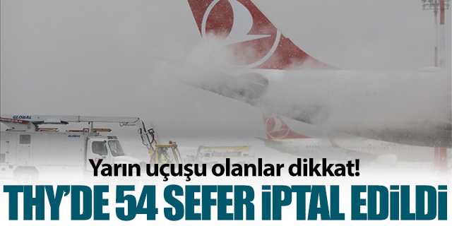 Türk Hava Yolları, yarın beklenen olumsuz hava koşulları nedeniyle 54 seferini iptal etti.