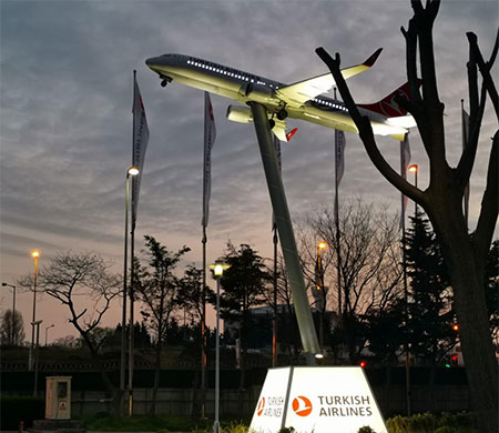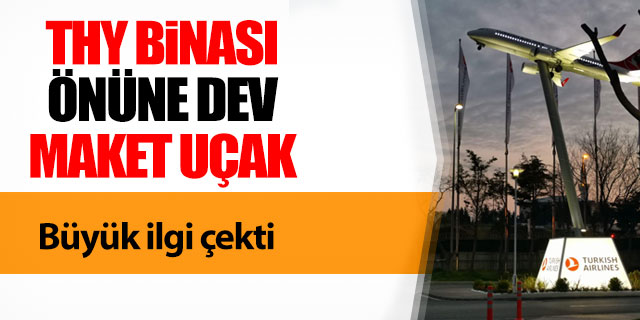Türk Hava Yolları’nın Yeşilköy’deki genel müdürlük binası girişine dev THY uçak maketi yerleştirildi.