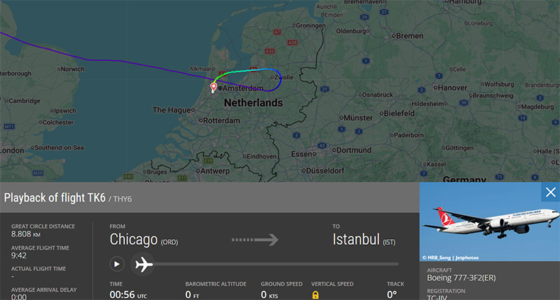 Türk Hava Yolları'nın TK6 sefer sayılı Chicago-İstanbul seferini gerçekleştirecek yolcu uçağı Amsterdam'a acil iniş yaptı.