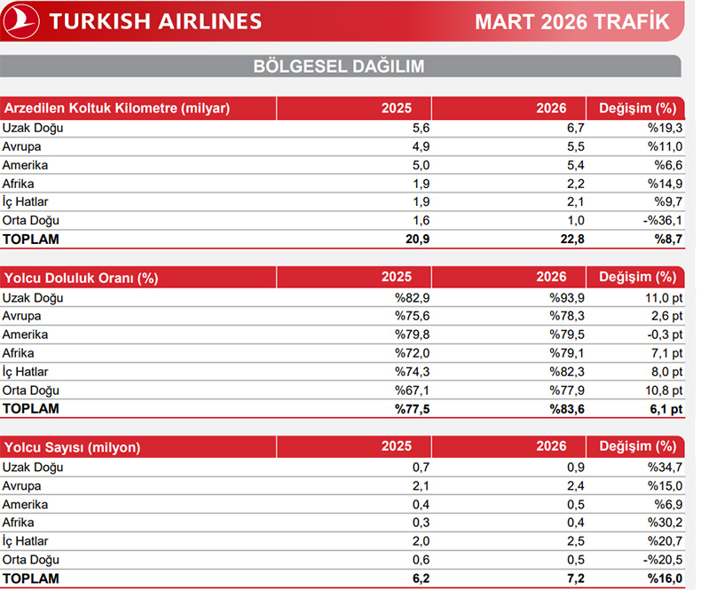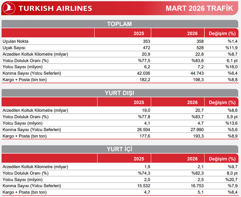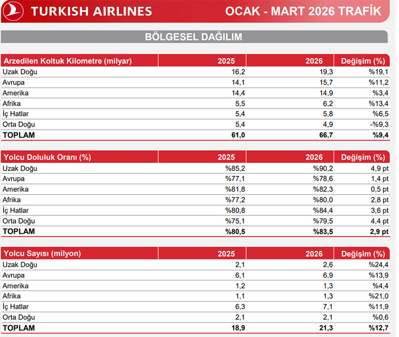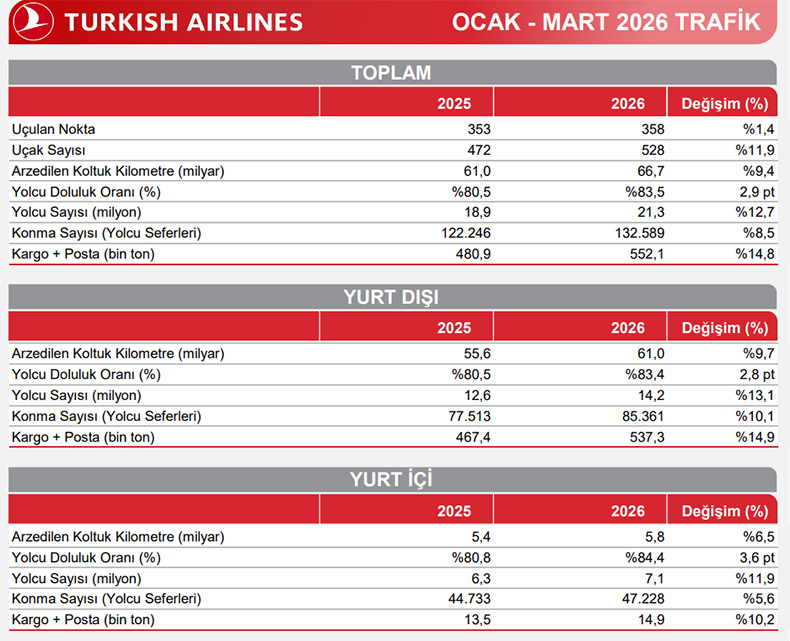 THY'nin Ocak-Mart dönemi rakamları belli oldu