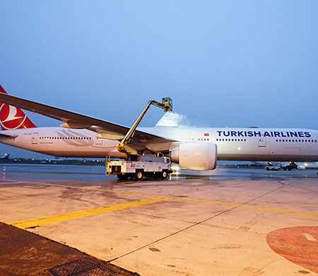 Türk Hava Yolları havaların soğuması veya uçaklarının gideceği meydanlardaki hava koşulları nedeniyle dün geceden beri 15 uçağına de-icing yaptı. Uçaklarının gideceği meydanlardaki hava koşullarına nedeniyle kanat, motor, kuyruk ve gövdesi özel bir araçtan püskürtülen alkolle buzlanmaya karşı korunuyor.